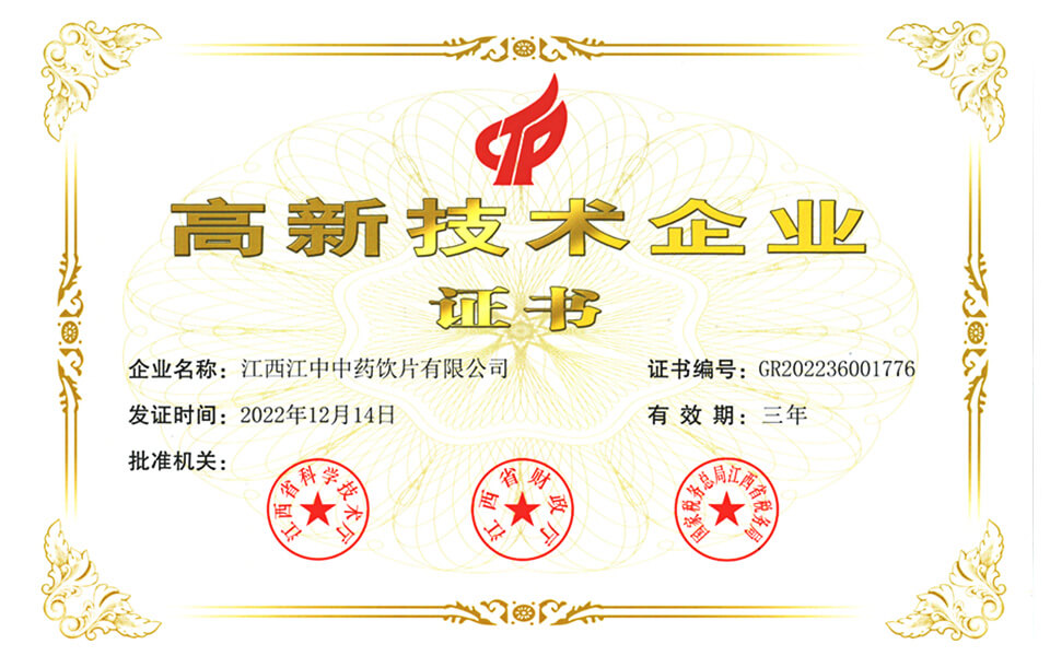 062022年获评江西省“高新技术企业”