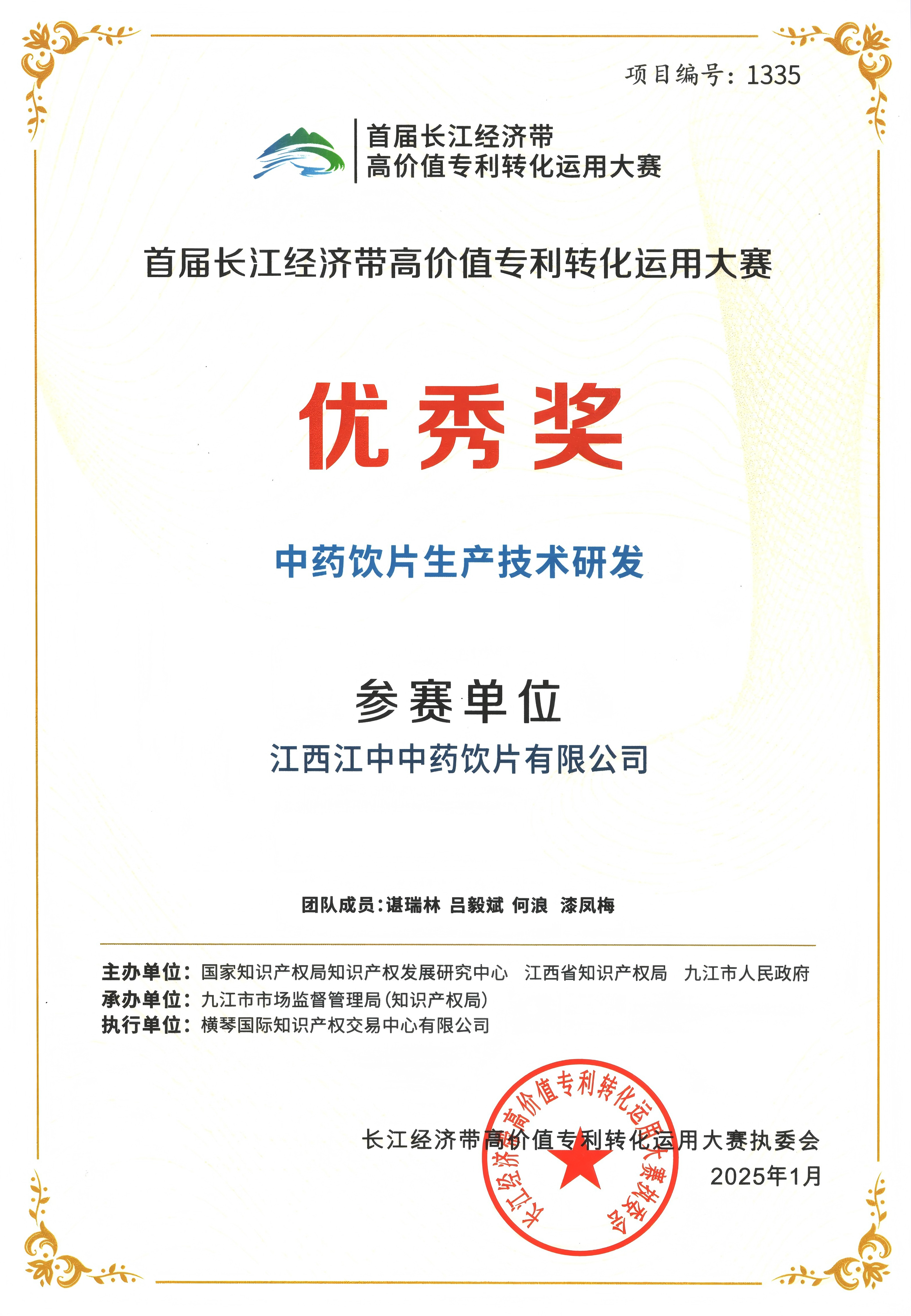 012025年获首届长江经济带高价值专利转化运用大赛优秀奖